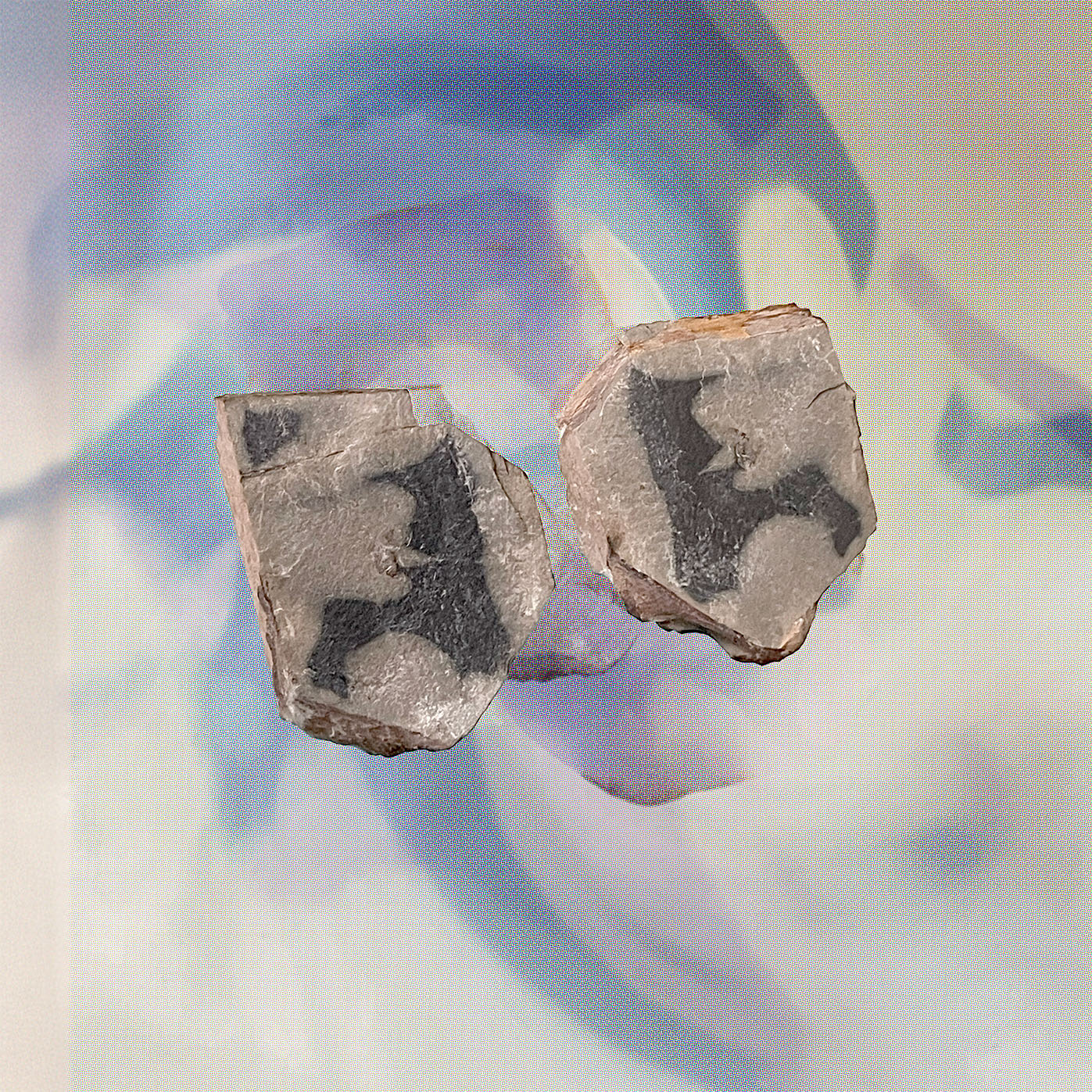 Years ago, I began collecting "mirrored rocks" - pieces of shale found split in a specific way, revealing variations in mineral content ~ printed within. I saw ephemeral scenes, symbols, and shapes represented in them, somehow made infinitely more powerful in tandem. I am attracted to how each recognizes the other, and connections made between “opposing” sides led me to wonder what , invisibly, lies at the center?
